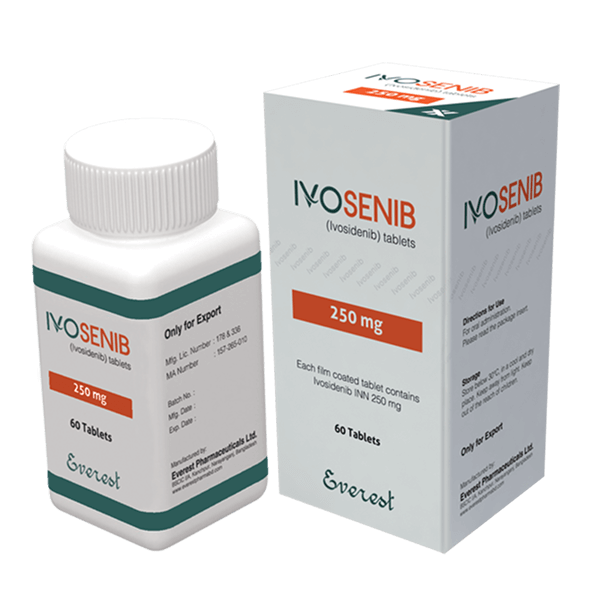 - Впервые диагностированный острый миелоидный лейкоз (AML) с мутацией IDH1 у взрослых пациентов ≥75 лет или при наличии сопутствующих заболеваний, исключающих интенсивную индукционную химиотерапию