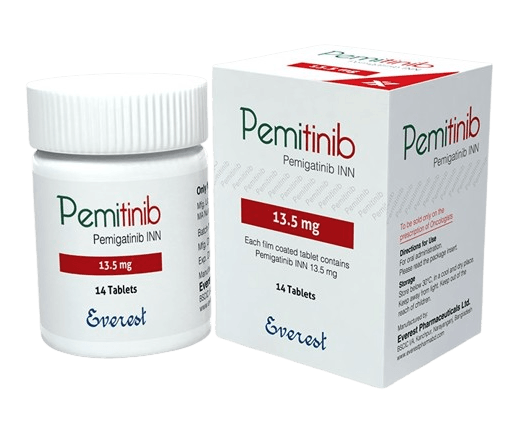 - Ранее леченная, нерезектабельная местно-распространённая или метастатическая холангиокарцинома с фузией или иной реаранжировкой FGFR2 у взрослых
